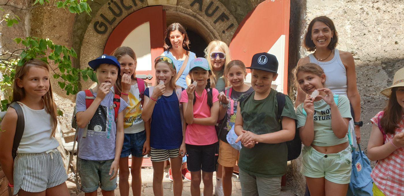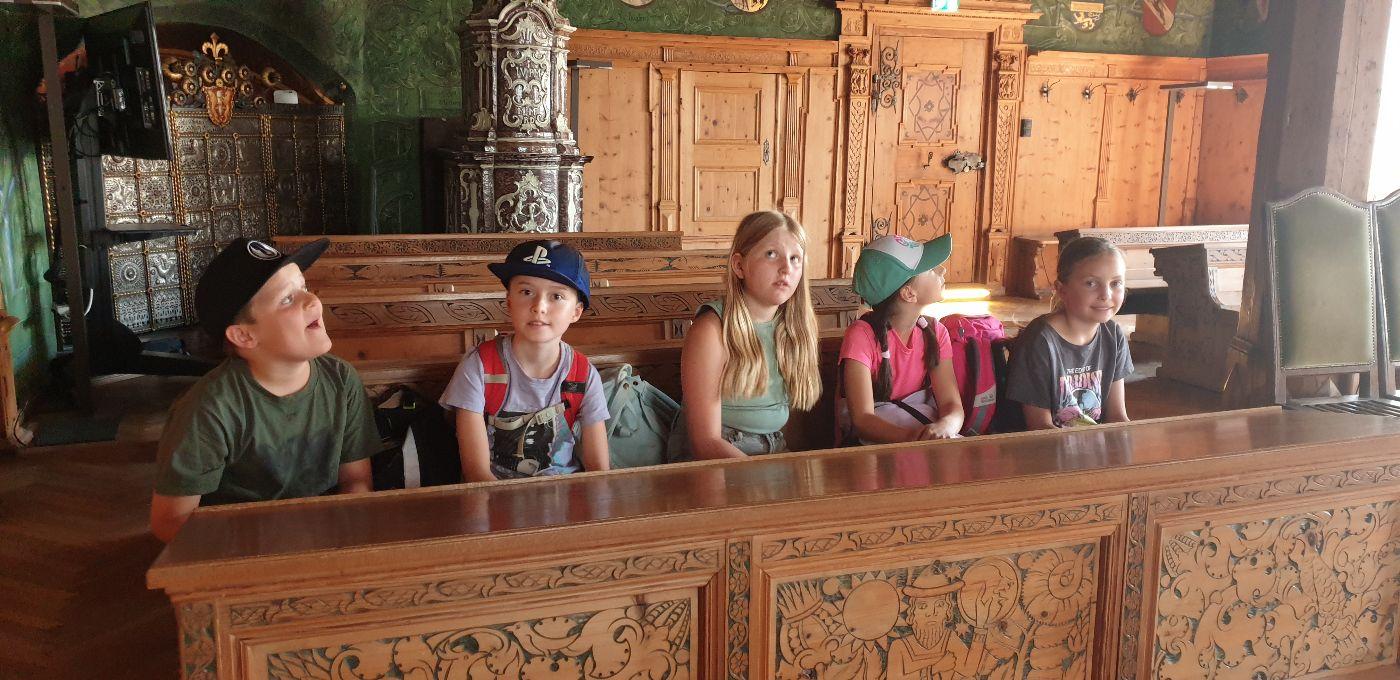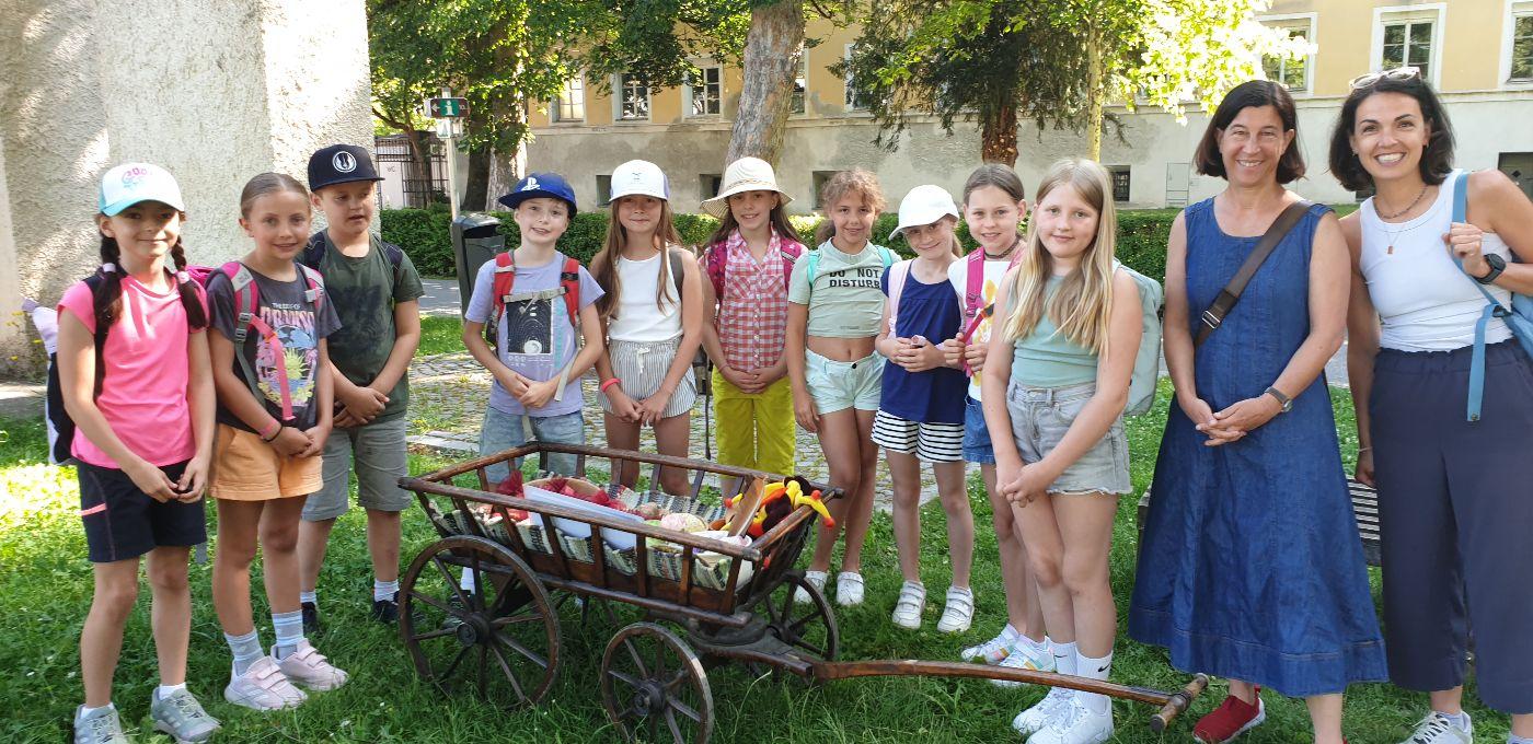 Mit dem Leiterwagen durch Hall und so die Geschichte der Salzstadt entdecken, im Bergwerksmuseum über die Rutsche und viele Stufen hinauf auf den Münzerturm - Am 24. Juni durften die Kinder der dritten Klasse einen spannenden Tag in Hall verbringen. Für jede und jeden war Interessantes dabei!