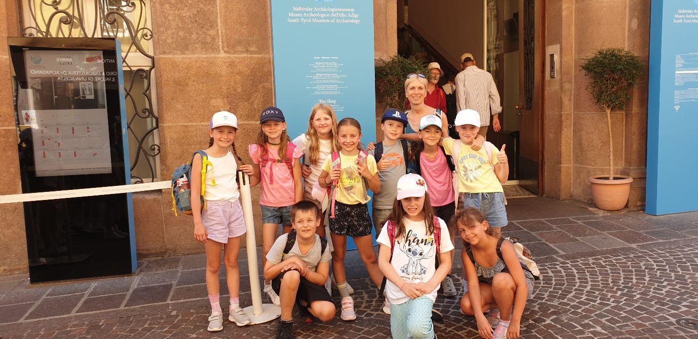 5300 Jahre zurück in die Vergangenheit! Am 1.7.2025 machten die Kinder der dritten und vierten Schulstufe eine Zeitreise in die Steinzeit und besuchten das Archäologiemuseum in Bozen. Mit viel Interesse erforschten sie die Lebensweise und Ausrüstung des Mannes aus dem Eis, besser bekannt unter dem Namen "Ötzi". Natürlich durften ein Spaziergang durch die Altstadt, bestes Eis und Zeit auf dem Spielplatz auch nicht fehlen.
