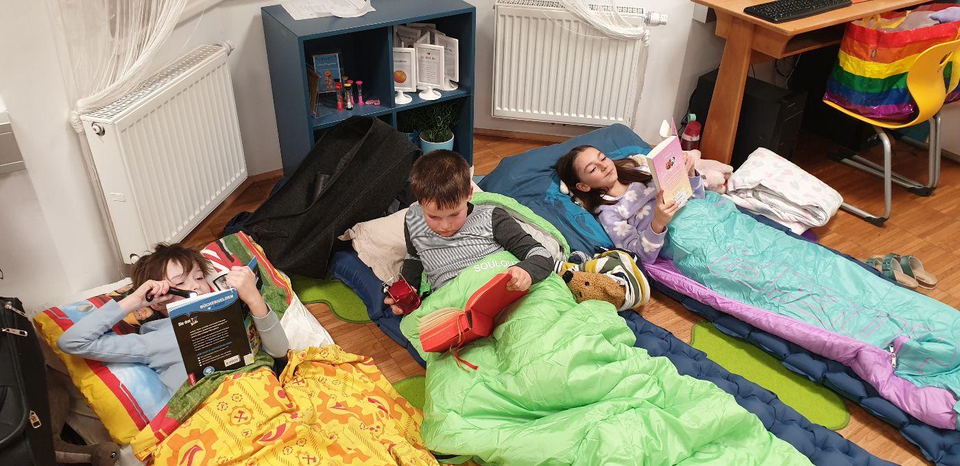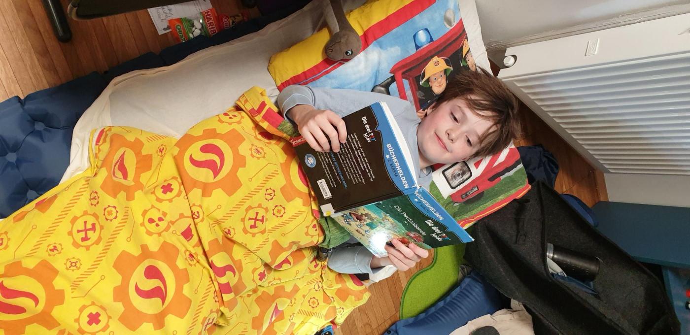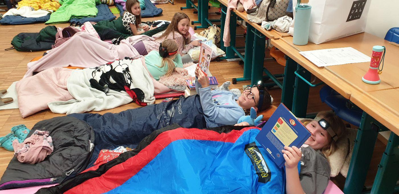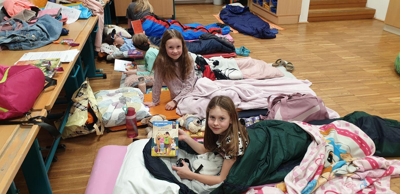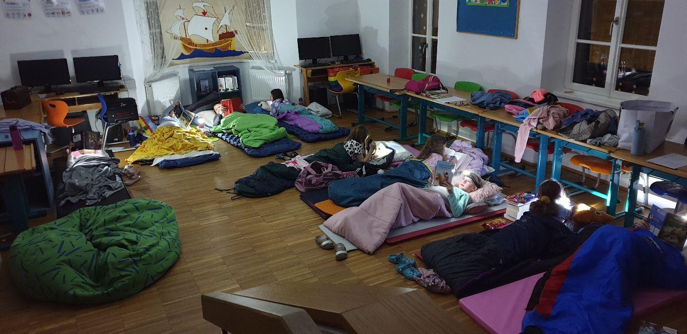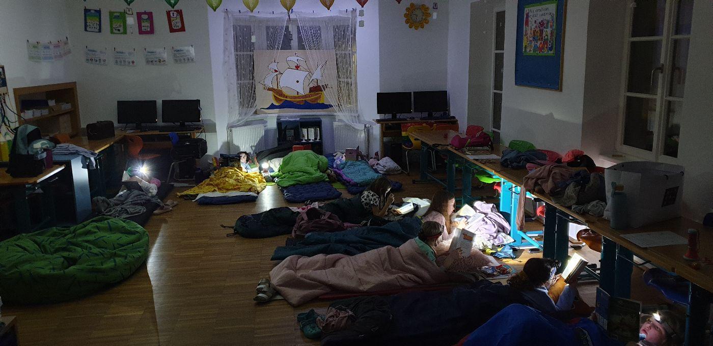 Am 31.1.2025 fand die Lesenacht für die dritte Schulstufe statt - ein "erlesener", spannender, fernsehfreier Abend mit viel Lesestoff zum Thema Piraten, Spiel und Spaß am Piratenschiff im Turnsaal und Schmökern im Schein der Taschenlampen. Erst nach Mitternacht wurde es langsam dunkel in unserer zum Schlafsaal umfunktionierten Klasse. Am nächsten Morgen gab es natürlich noch ein gutes, gemeinsames Frühstück.